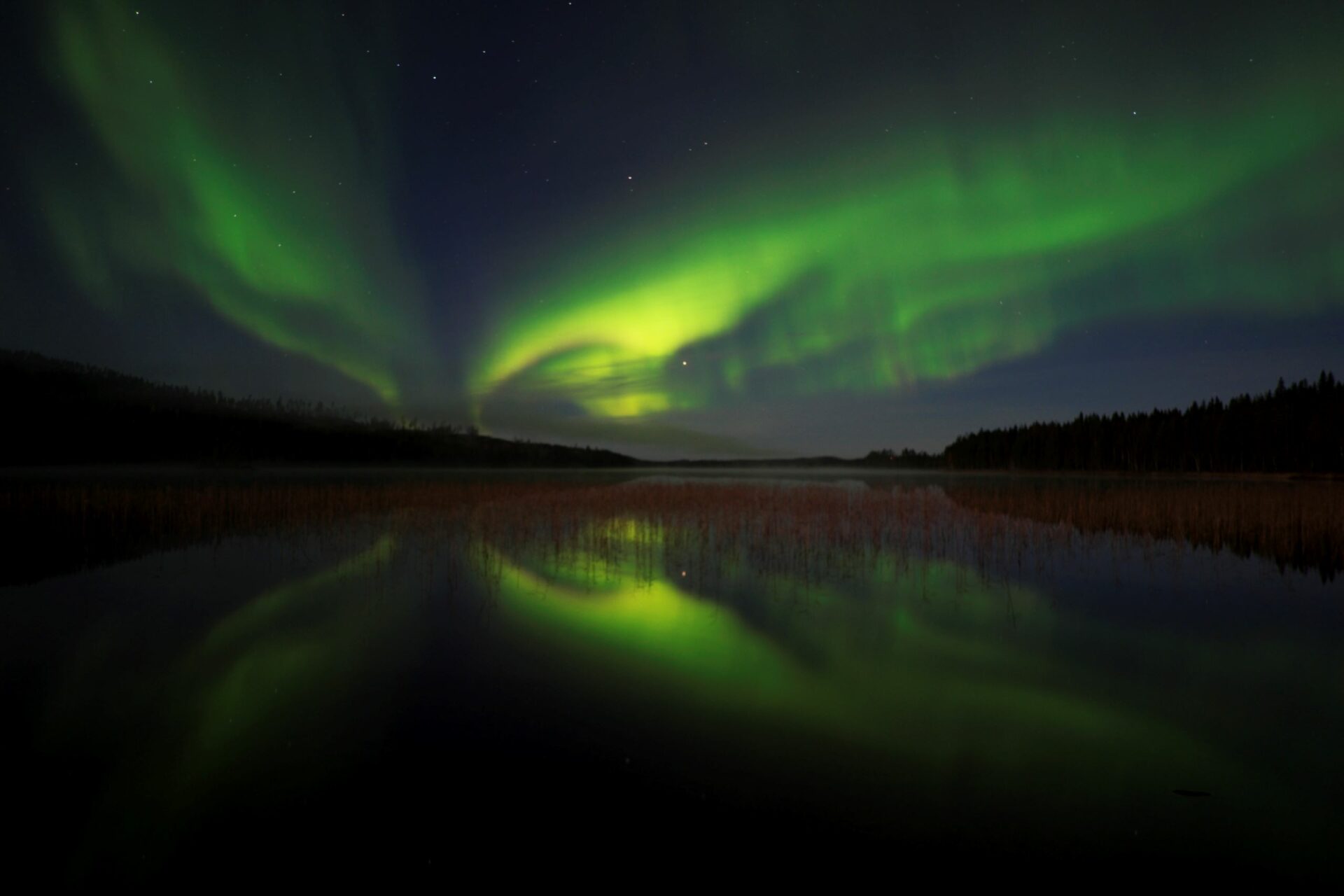 Nordlichter über dem Fluss Ume bei Granö Beckasin © Granö Beckasin