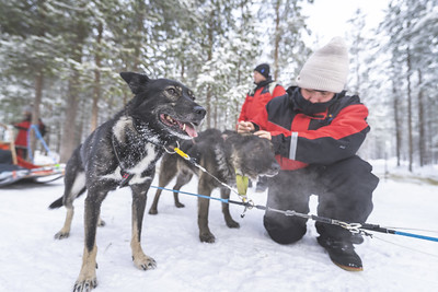 Nach dem Frühstück bringt Sie ein Bus zur nahegelegenen Husky-Farm, wo die lebhafte Meute Sie willkommen heißt. Nach einer kurzen Einweisung starten Sie zur 8–10 km langen Husky-Safari, mit Fahrerwechsel auf halber Strecke. In einer gemütlichen Kota genießen Sie eine Pause, bevor es nach etwa 2,5 Stunden zurück zum Hotel geht. Der Nachmittag steht Ihnen zur freien Verfügung. Am Abend erwartet Sie ein entspanntes Essen im Hotel.